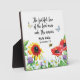 The faithful love of the Lord never ends. His mercies never cease. This beautiful photo plaque with red and yellow flowers evokes happiness. The Bible verse is in black.