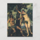 The Fall of Man; Adam and Eve (c. 1570) by Titian is a vintage Renaissance fine art religious portrait painting featuring Adam and Eve in the Garden of Eden. Eve is reaching for an apple from the tree of the knowledge of good and evil. A serpent (or snake) tempted Eve, who was aware of the prohibition against eating the forbidden fruit.