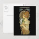 Vintage art nouveau image of young woman in profile holding a white feather. Fine art by Czech artist Alfons Mucha.