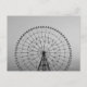 A black and white photograph of the large Ferris wheel at Kasai Rinkai Park in Tokyo.