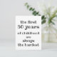 NewParkLane - 50th Birthday Postcard, with funny quote 'The First 50 Years of Childhood are the Always the Hardest', in fun, modern script typography.