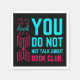 The first rule of book club is: you do not talk about book club.This funny phrase is boldly expressed in this colourful design, and simply pops out of the black or white background. The phrase is accompanied by a simple logo created by 2 book icons placed together, one facing upwards and one facing downwards. If you are already on a book club, fear not, I won't tell anyone. And if you suspect someone is part of a book club, then this design is perfect for them. This funny quote and beautiful design look amazing on a wide variety of products, and will let you show your bookish, geeky side in style.