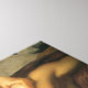 This design features a painting by the British Victorian painter Sir Frederic Leighton (1830–1896). It shows a young Sicilian fisherman whose ship has been wrecked and he is slipping down a rock into the water. He is wearing only a crimson loin-cloth, with the rest of his purple clothing cast aside on the rocks. An attractive water-nymph is grasping the man around his neck, teasing him with the beauty of her body. The nymph is unclothed as she hugs her breast to the sailor; her long wavy blonde hair is laced with pearls. A siren (spelled by Leighton as syren) is a legendary creature from Greek mythology that has the body of a woman and legs of a bird; since they attempt to seduce sailors to their deaths, they have been seen as symbol of the dangerous temptations posed by female beauty and male desire. The original art was painted circa 1856–1858.