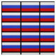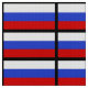 The blue, white, and red flag representing Russia.