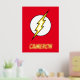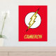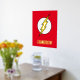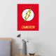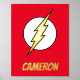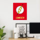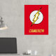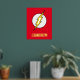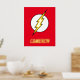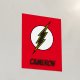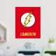 The iconic Flash Lightning Bolt Logo; a yellow lighting bolt running through a white circle on his classic bright red coloured background.
