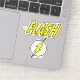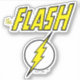 Check out this iconic logo for The Flash, featuring his name in telescopic speed style over the bright yellow lightning bolt in circle icon!