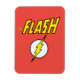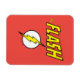 Check out this iconic logo for The Flash, featuring his name in telescopic speed style over the bright yellow lightning bolt in circle icon!