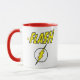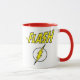 Check out this iconic logo for The Flash, featuring his name in telescopic speed style over the bright yellow lightning bolt in circle icon!