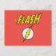Check out this iconic logo for The Flash, featuring his name in telescopic speed style over the bright yellow lightning bolt in circle icon!