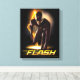 Check out The Flash crouched down in a running start position, lightning striking the ground behind him.