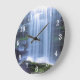 Blues, greens, and white are the predominant colours of this nature photo of a sparkling waterfall in a green forest.