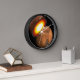 The size of the clock is dramatic and the abstract alcohol ink design is soothing and intricate at the same time. I chose the black frame that adds pop to the blue and gold design. The gold printing would be better in a slightly darker or larger font. I love it and I’m looking for just the right place in ny new apartment. I would recommend this clock for a personal gift or a present. I feel that the quality is excellent for the money! I’m a bit of a clock nut so I’m pretty particular about my purchases. The clock is larger in diameter than many if the clocks I have, so it stands out very well. I think a slightly darker printing color and a moderately larger size would best suit a professional decor or add more impact in a work place item.