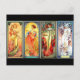 this beautiful set of maidens portraying the 4 seasons splendidly is the handy work of Alfons Maria Mucha 1860-1939 who is best known as Alphonse Mucha the father of Art Nouveau painting. He was a Chech artist known best for his very bold distinct style, especially his advertisements. He was a prolific artist and produced many paintings, illustrations, advertisements, postcards, and designs as well as designs for jewellery, carpets, wallpaper, & theatre sets in what became known as Art Nouveau. Mucha's works frequently featured beautiful young women in flowing vaguely neoclassical looking robes, as seen here often surrounded by lush flowers which sometimes formed haloes behind the women’s heads. " The Four Seasons " circa 1900, shown here is his 3rd set of decorative panels in the series and it became one of his most popular series artworks. It was so popular in fact that he was asked to produce at least two more sets based on the same theme. designs for a further two more sets also exist but were never completed.