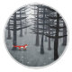A wild red fox stands among the pine trees in a dark forest. A landscape painting for wildlife, nature and animal lovers.