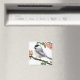 Original fine art design of a male Black Capped Chickadee by artist Carolyn McFann printed on a quality magnet for wild bird lovers.