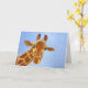 This enchanting oil painting of a friendly African giraffe by Sharon Carter really takes your eye. Gazing placidly towards you it makes eye contact, following you around whatever direction you view it from. This card can be personalised with your own message on the inside to suit any occasion.