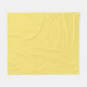 "The front of the fleece blanket features a yellow and white checkered pattern, while the back is plain white with visible fabric texture and gentle creases."