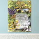 vintage painting of a christian bible quote 'the fruit of the spirit, love, joy, peace, longsuffering, gentleness, goodness. faith, meekness, temperance: against such there is no law' gal-v 22, 23 with yellow flowers, mauve flowers, pink and purple flowers, and a purple butterfly surrounded by green leaves with a scroll or parchment in the centre with a quote from the bible.