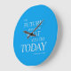 "The future depends on what you do today" - inspirational motivational quote wall clock, in a stylish typographic design of light blue and off white colours, perfect for your office, your gym or your home. This inspirational quote is by Mahatma Gandhi. Tip: -You can change the background colour to any dark colour you want. First click the 'Customise It' button to reveal all the design tools. -Delete the black background image file, click on the 'Edit' button, click on 'Background…' option, and choose your colour!