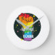 Great quality clock and very well made. Just what I was looking for to finish my hall off. Looked in loads of other websites and eventually found exactly what I was looking for at Zazzle. Designe and colour is perfect. I just love it. Bought the medium size and fits well for where I was placing it.