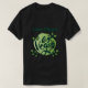 I give wanted to give this a 4 instead of a 5 because these Basic DARK T0shirts run unexpectedly SLIM or Narrow. Which is great if you do not have a potbelly, but I have a paunch. It isn't the shirt's fault that I've got a beer belly. The design and shirt itself is a quality cotton shirt. The color is more of a deep purple, but still a very pretty color. The Basic DARK T-shirts run a bit SLIMMER than the Basic Ts. The neck is a fraction narrower (or seems to be narrower) also. I'm a paunchy middle-aged woman and my neck is 12 inches (31cm) thick and the neckline fell about the same as in the photo of the man, and I had the desire to tug it a bit. So if you're a thick necked man or like loose shirts, be aware these are slimmer shirts. Once I get rid of my lockdown paunch it'll look great. The shirt washed well in cold water with no apparent bleeding. We don't have a dryer, so it hung dry. Did not shrink. Love the colors and the design. The design looks smaller on my shirt than it does on the model on-line. But still, it looks good on the shirt. The printing looks as it does on the model, just the size seems fractionally smaller. Washed garment in cold water, hung dry and design appeared unaffected.