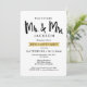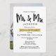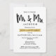 Chic photo engagement party invitation card with a design featuring the words "Mr. & Mrs." in a chic black handwritten font and a faux gold foil ribbon under the words "Engagement Party". On the rear side, the design features room for one large photo. Personalise the design by replacing the text and the photo. Please contact the designer if you have any design customisation requests.