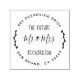 This return address stamp is a fantastic way to let your friends and family know you're engaged! This design features "the future Mr & Mrs" and your last name in rustic, hand-lettered font with your return address in a curve around the top and bottom to give it a circular shape. On either side of the stamp, to continue the round shape, there are two delicate branches. Click the "personalise" button to add your name and address.