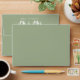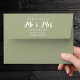 Formal return envelopes for The Future Mr and Mrs, customisable in colour, size and paper type in an elegant serif typeface with beautiful script design. This is the sage green version.