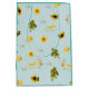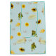 Mint green tablecloth with sunflowers, lemons and corn for a smart patio display for a spring garden party