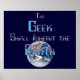 Words of wit The Geek Shall Inherit the Earth done in a computer style font in blue with red outline to stand out. This statement is set against a stunning photo of the earth.