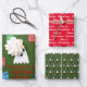 This awesome set of gift wrap features a cute Christmas ghost with black eyes and mouth wide open. The ghost is wearing a festive red and white hat with a pompom on the top. There are sparkly red, blue and green presents surrounding the ghost. A message in festive red text below the ghost says "The Ghost of Christmas Presents" in bold capital letters. This funny festive design is suitable for all ages.