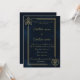 This sophisticated invitation template captures the timeless opulence of the Art Deco era. Set against a deep, textured blue background, the design features a striking geometric gold frame composed of clean, parallel lines. The highlight of the piece is the stylised, angular orchid motifs in the top-left and bottom-right corners, blending organic floral shapes with architectural precision. It is an ideal choice for high-end events, black-tie weddings, or gala evenings where luxury and understated elegance are the themes.