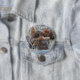 This button features 3 golden laced wyandottes that are flock sisters and squabble over who will get the prime flower pot seat! Cute and humourous!