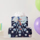 This design features a white and blue snowflake, coloured snowflakes and lots of snowmen dressed for a cold Christmas season. A glitter was added to this design. This Christmas gift wrap comes in assortment of colours, styles and sizes.