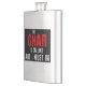 The product is a good size and came exactly as it was pictured. The lid is not attached to the flask, which could be dangerous on drunken nights... The print came out surprisingly well and looks very sharp. Would definitely recommend.