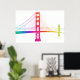 This artwork features the Golden Gate Bridge in San Francisco, California in a rainbow style design.
