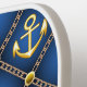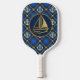A Nautical Themed Blue And Gold Pickleball Paddle Designed With A Pattern Of Golden Chains, Anchors And Sailboat