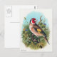 Beautiful vintage image of a goldfinch perched on a branch and surrounded by leaves and flowers.