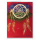 Greeting card - from the original painting by Harmony, blues, reds, golds and greens, gold feathers!