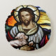 The Good Shepherd; Jesus on stained glass Round Cushion