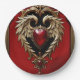 The gothic heart of fire and gold. This opulent design features an ornate gold frame set against a deep red background, exuding an atmosphere of luxury and elegance. The faceted ruby heart is artfully adorned with golden wings that lend it a graceful lightness, as well as delicate gold jewellery that underscores its sophistication. The interplay of the rich gold tones, the luminous rubies, and the deep red background creates a luxurious and sensual aesthetic that impressively combines romance and opulence.