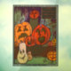 A window cling with a funny Halloween cartoon about a pumpkin family. The image, and background can be personalised. Original artwork by DBcartoons.