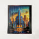 The Grand Art Deco Blue Plaza Pavilion AI Concept Art by Xzendor7; illuminated by the golden glow of the setting sun, accented by the glorious architectural skyline of glass and steel.