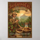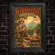 • This poster is a vibrant digital illustration of a 1960s style advertisement for "The Grand Cru Java Bliss" coffee. It features a smiling adventurer holding a cup with a volcano in the background and bold, colourful text. Note: The product name "The Grand Cru Java Bliss" is fictional and for artistic purposes only.
