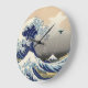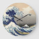 The image depicts a drone filming an enormous wave threatening three boats off the coast in the Sagami Bay while Mount Fuji rises in the background. This is one of the first drone sightings.