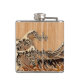 The Great Hokusai Wave Bamboo Wood Style Accent Hip Flask