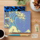 A custom design inspired by the Great Wave of Kanagawa painted by ancient Japanese artist Hokusai. It is rendered in a vibrant blue pop art style. Sounds good, a great gift idea.