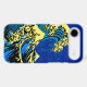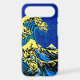 A custom design inspired by the Great Wave of Kanagawa painted by ancient Japanese artist Hokusai. It is rendered in a vibrant blue and yellow pop art style. Sounds good, a great gift idea.
