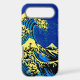 A custom design inspired by the Great Wave of Kanagawa painted by ancient Japanese artist Hokusai. It is rendered in a vibrant blue and yellow pop art style. Sounds good, a great gift idea.