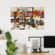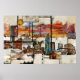 A mixed media digital print of iconic Texas landmarks and architecture combined in a water colour montage composition.